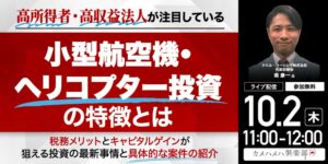 【セミナー冒頭5分紹介】高所得者・高収益法人が注目している「小型航空機・ヘリコプター投資」の特徴とは