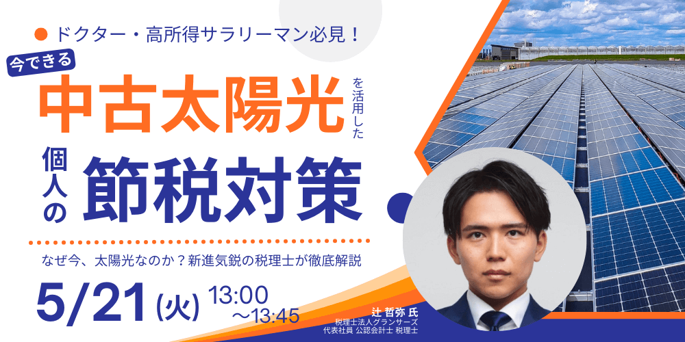 | 本コラムは、2024年5月21日に開催されたセミナー『ドクター・高所得サラリーマン必見!今できる「中古太陽光」を活用した個人の節税対策』(講師:税理士法人グランサーズ 代表社員 公認会計士 税理士・辻哲弥氏)の冒頭5分を書き起こしたものです。 |
