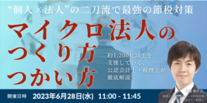 | 本コラムは、2023年6月28日に開催されたセミナー『「個人×法人」の二刀流で最強の節税対策「マイクロ法人」のつくり方、つかい方』(講師:税理士法人グランサーズ共同代表 公認会計士・税理士・黒瀧泰介氏)の冒頭5分を書き起こしたものです。 |